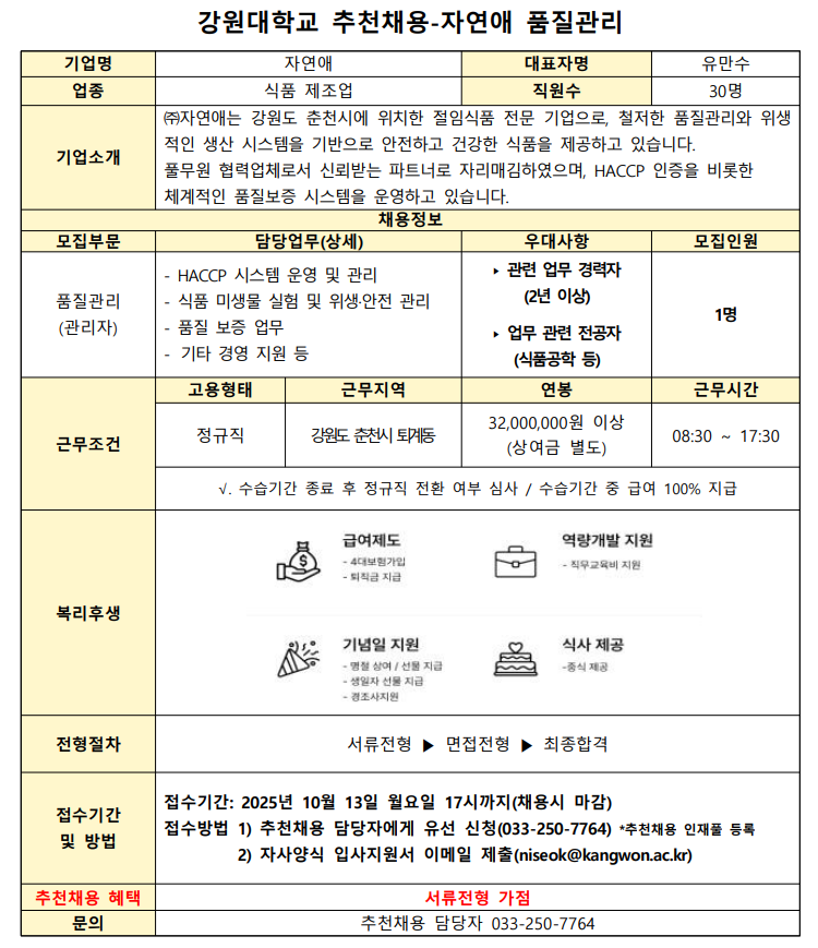 [공지] 자연애 추천채용 안내 (10/13 월요일 17시까지)
