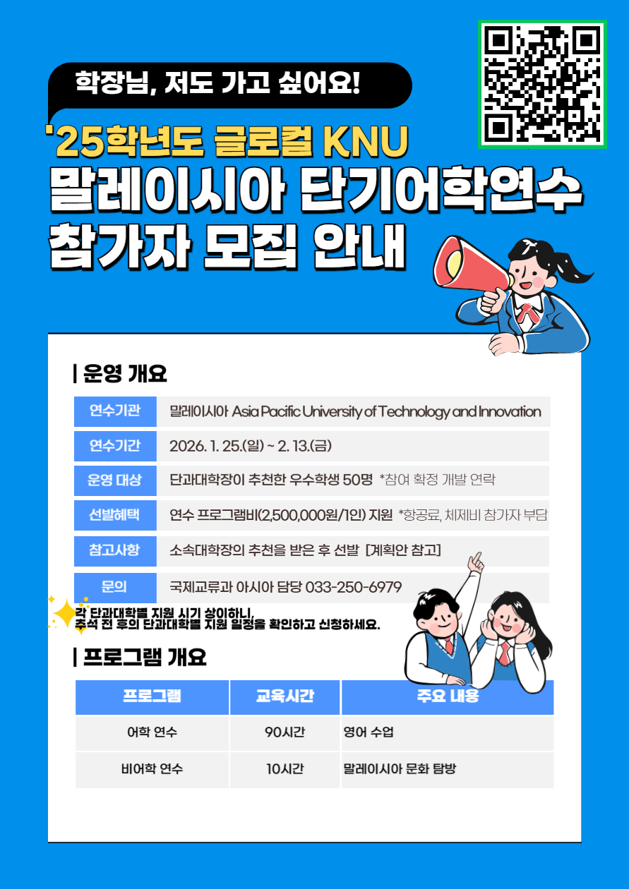 [공지] 2025학년도 말레이시아 단기어학연수 우수학생 추천 안내