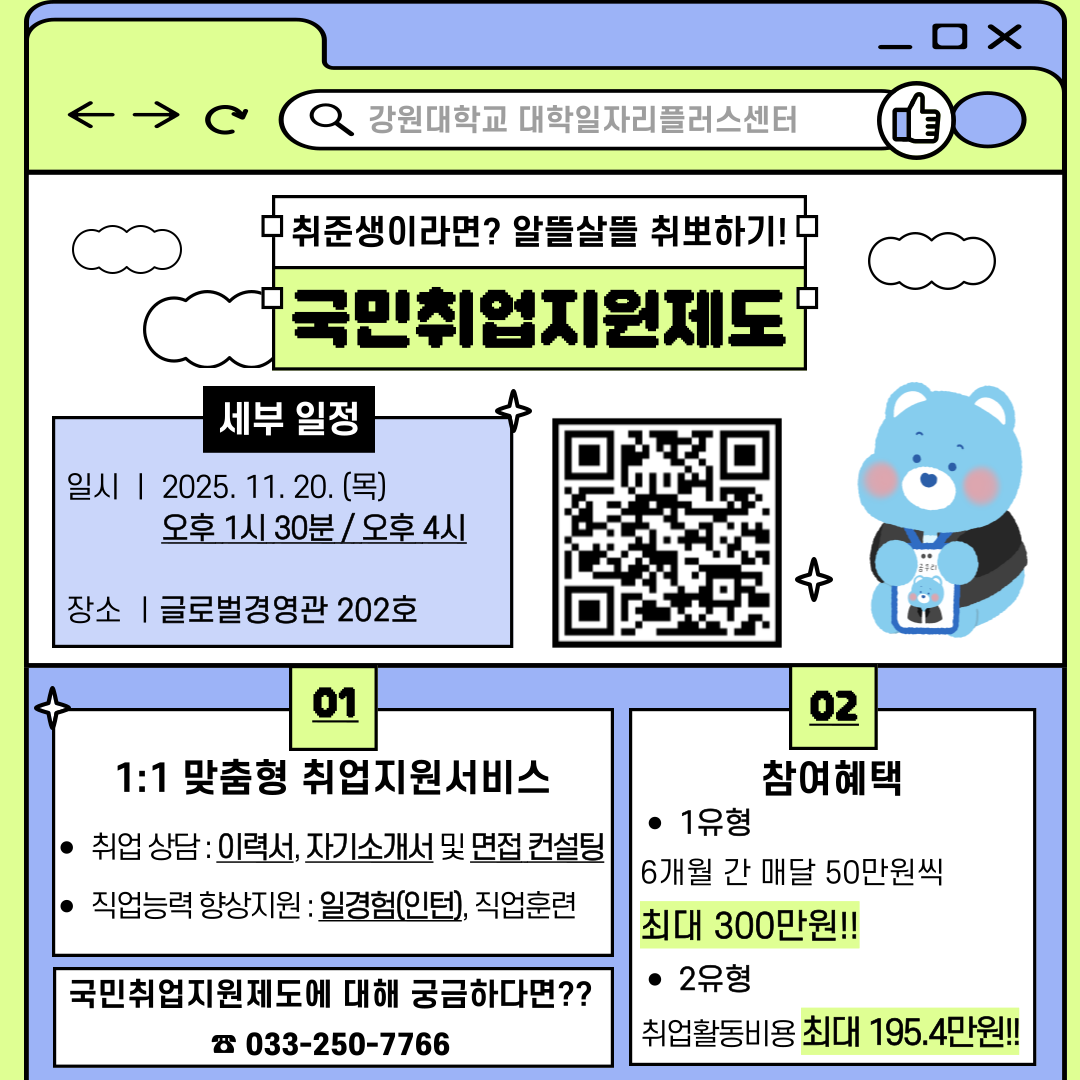 [공지] 2025년 11월 청년고용정책 및 국민취업지원제도 설명회 개최(11/20 목요일 13:30, 16:00)